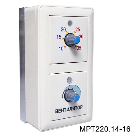 МРТ220.14-16 — совмещает в одном корпусе терморегулятор и симисторный регулятор скорости вращения приточного вентилятора на 2А на 220В.