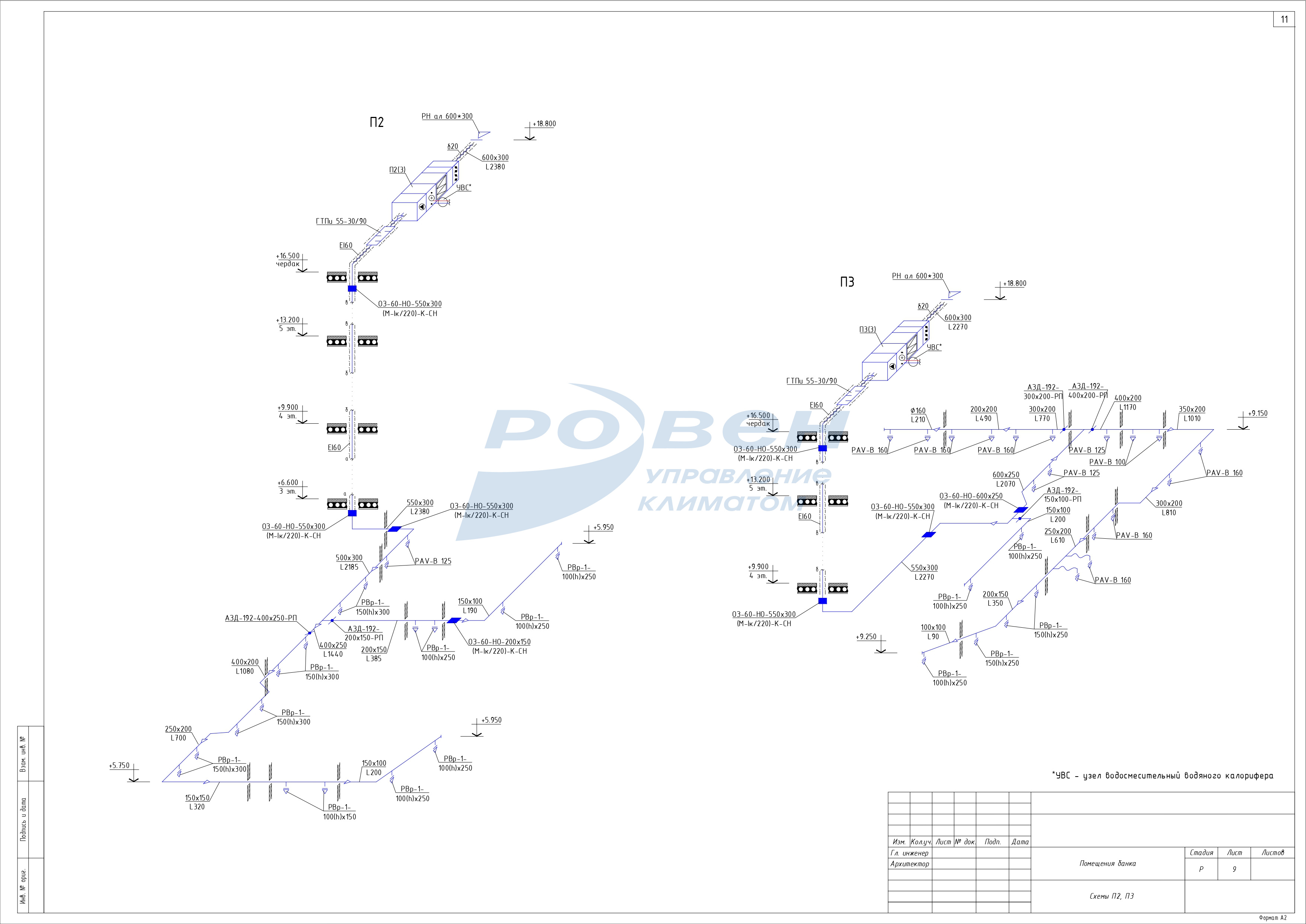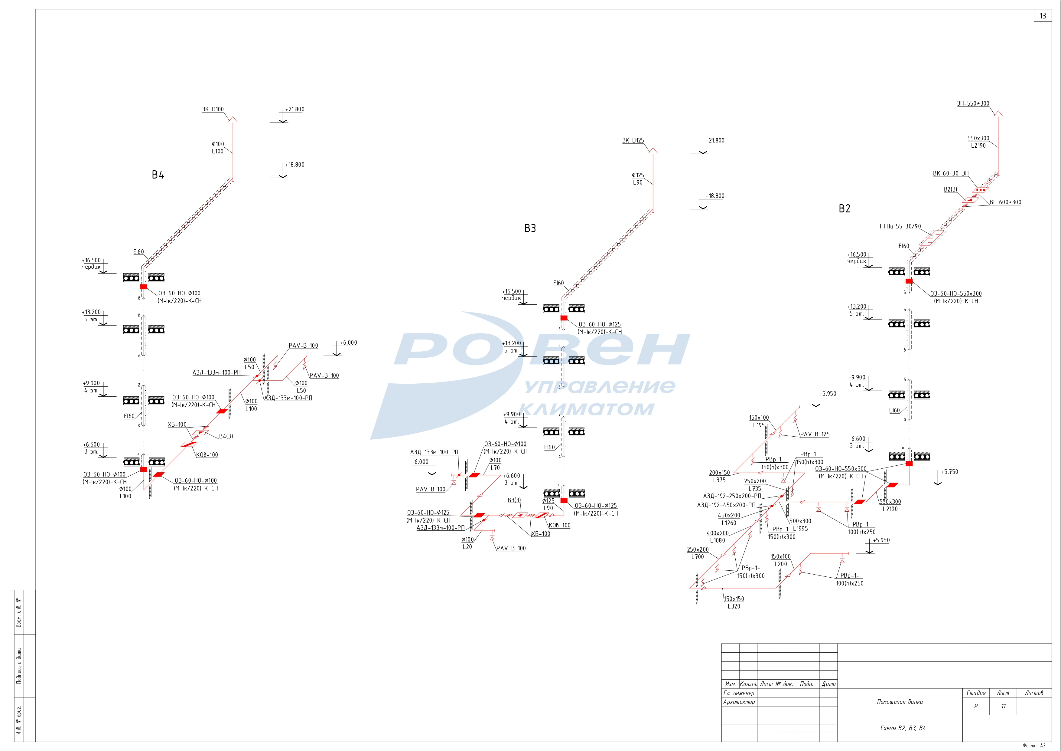 3 этаж - приточные системы - П3, П4, вытяжные системы -В6, В7.
